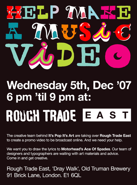 pues a mi ni me gusta motorhead, pero pues a ver que pasa, suena interesante, quien quite y hasta me dejen quedarme con un lápiz ó lo que vayan a dar de material, para trabajar y buenoademás rough trade está bien bonito :D es un cielo para compradores de música, a ver si hoy si le tomo fotos :) de perdis!
